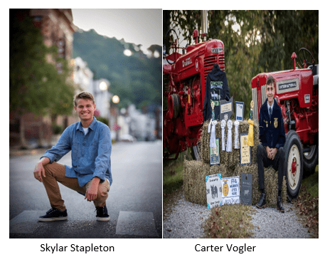 Skylar Stapleton will pursue dual degrees in Architecture & Arts plus Management & Entrepreneurship at Miami University. Skylar is a graduate of North Adams High School. Carter Vogler will participate in the John Deere Tech program at Owens Community College. Carter is a graduate of Peebles High School.